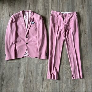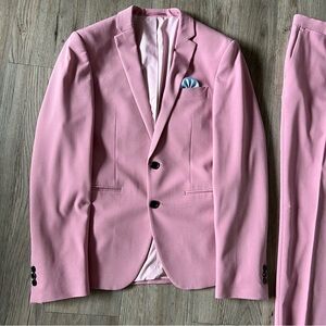 Elevate your style with the Simons Pink Suit, featuring a sleek, slim-fit design in a vibrant pastel pink. Crafted from lightweight fabric, this suit is perfect for spring and summer occasions, offering a modern and eye-catching style.
