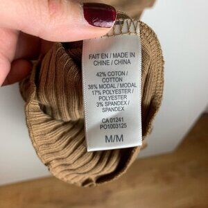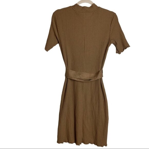 Simons Ribbed Belted Bodycon Dress Neutral Tan Brown Size Medium Autumn Fall