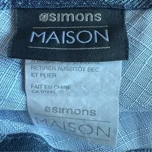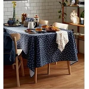 Indigo blue patterned 60 inch round tablecloth from Simons Maison. 100% polyester made from recycled plastic bottles. Easy-care, machine wash and dry. Designed in Canada. In like new condition. ➡️