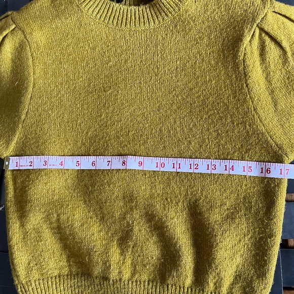 Simons (S) ultra-soft pullover sweater with sleeve detail, deep mustard yellow.