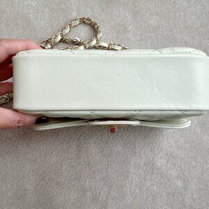 ♥ made in Italy, elegant quilted rectangular shape accented with gold hardware and a chain-and-leather crossbody strap