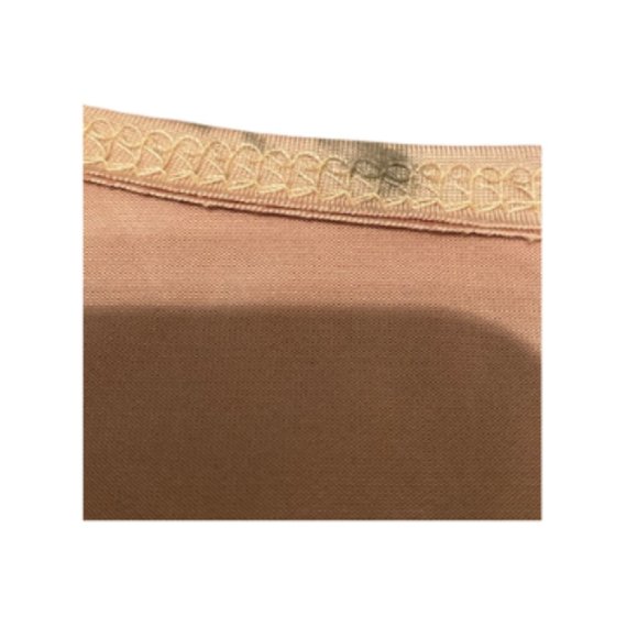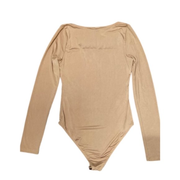 Silky smooth bodysuit! Very comfortable. There is a small stain on the back hemline as shown, I'm presuming it was an ink stain from the tag during the manufacturing process since it was there when I bought it. Otherwise it is in excellent condition.