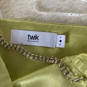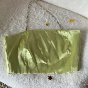 Super cute combination of the 💎 chain and silky yellow green top 😻😻