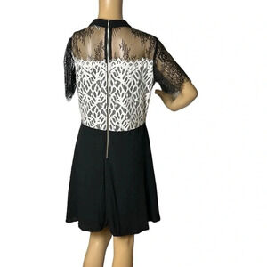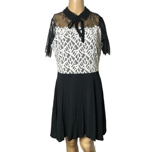 Simons Twik sheer ,lace dress,fray,lined,bow,shirt collar,Colorblock,multi media