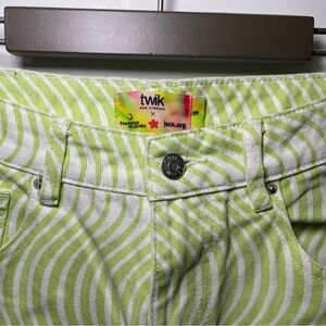 Simons Twik women’s Green psychadelic stripes Straight Leg denim jeans in size 29
