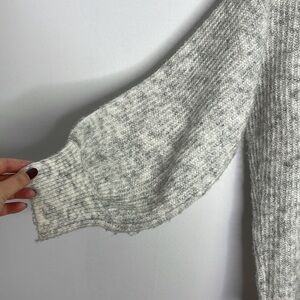 In good second hand condition gently worn. 73% polyester 25% acrylic 2% spandex. Larger boat style neckline. Plush texture. Minor piling. Balloon sleeve. Measure lay flat: shoulder 21'' bust 22'' length 27'' sleeve length 21''.