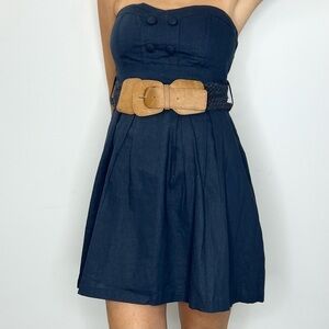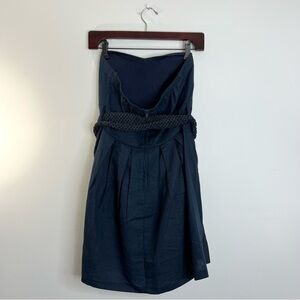Simons navy blue linen blend belted strapless mini dress M