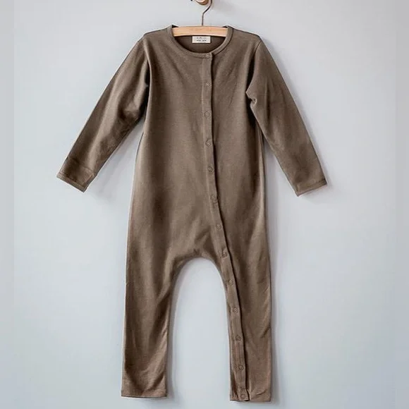 “Classic and timeless, our delightfully soft long-sleeve pajama is quite literally the stuff dreams are made of. Designed for cozy slumbers, this piece features simple snaps and includes feet and fold-over hand covers on sizes NB–12 months.