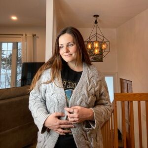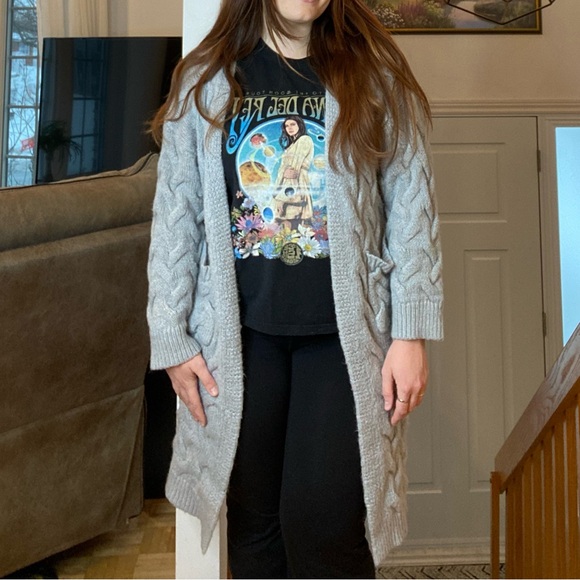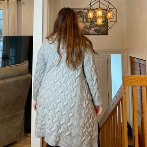 Elegant gray sweater with a textured knit pattern. Ideal for casual wear.