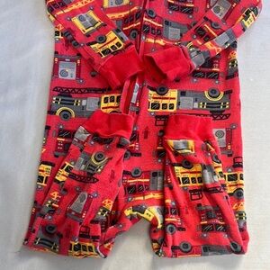 Red onesie with fire truck pattern by Simple Joys. Fun and cozy for kids.