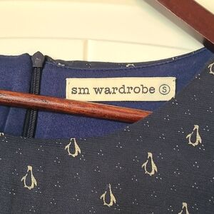 Chic navy mini dress featuring a penguin pattern. Simple and cute!
