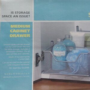 Smooth-glide cabinet drawer can be used under the sink for extra storage. Includes two removable dividers. Fits all size vanities and cabinets.