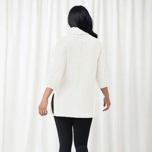 This Sympli sweater is very cozy and comfortable, and has only been worn once, then hand washed and steamed. Although a size small, it does fit more like a medium. 3/4 length sleeves so great to show off bracelets and watch. A great basic for your wardrobe. Original Price $215.