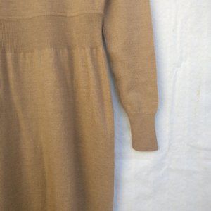 Simple Wool ribbed Knit Sweater Dress 100% Merino Wool, Camel brown