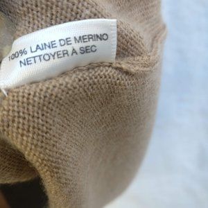 100% Merino wool loved for being Softer and finer than standard wool, making for pieces that are a joy to wear next to the skin without the itchiness that other wool can sometimes brings. Their elasticity gives the fabric lifetime ability to retain shape so you that wear them for many years to come. Excellent preloved in original shape and size, neat ready to wear.
