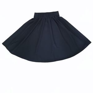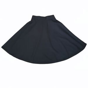 Simple black a-line skirt with an elastic waistband. Neat flat band at front and stretch gathered in back.
