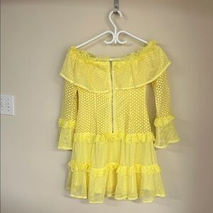 Off-shoulder style with playful ruffles. Bright yellow hue. Perfect for sunny days.