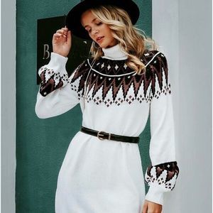 Simplee Tribal Turtle Neck Sweater Dress Without Belt SizeL