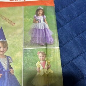 Charming kids' costume pattern by Simplicity. Includes designs in pink, blue, purple, and yellow. Perfect for imaginative play and dress-up fun.