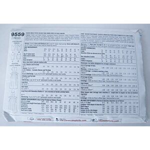 Simplicity 9559 Sewing Pattern Misses Dress Sleeveless Short Sleeve Summer Size