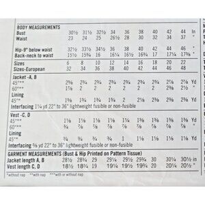 Misses' jackets and vests, button closure, lined jacket and vest, back ties, patch pockets.