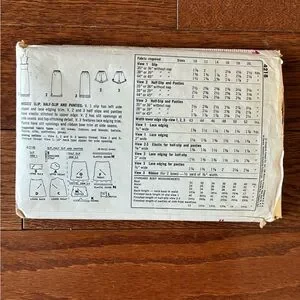 Views include a side-zip slip (V1) with lace edging, half-slip, and panties; easy for lightweight fabrics like nylon. It’s a classic undergarment set for vintage dressmaking.