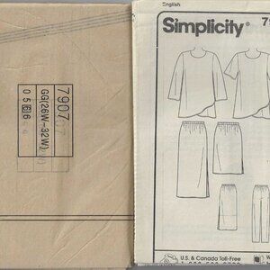 This is vintage Simplicity Pattern #7907 for women's tunic, skirt and pants in size GG 26W-32W. It is new, unused, uncut and factory folded. It is from 1997 but is a rather timeless style.