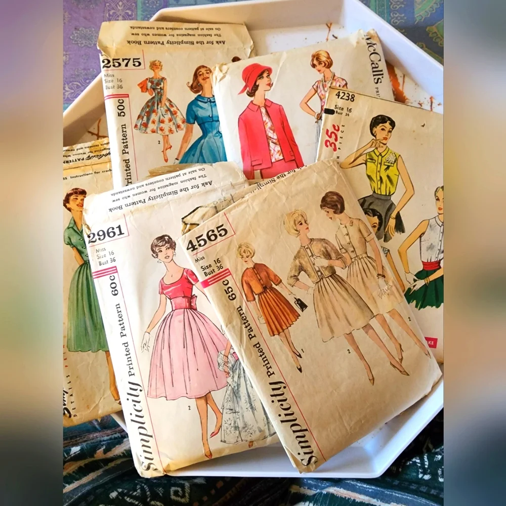 Collection of vintage sewing patterns. Includes dresses and skirts. Perfect for a retro fashion seamstress. sizes are vintage sizing. please go off measurements. as is not sure if any parts are missing .