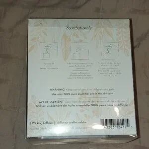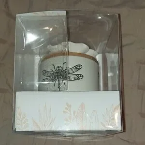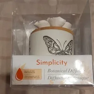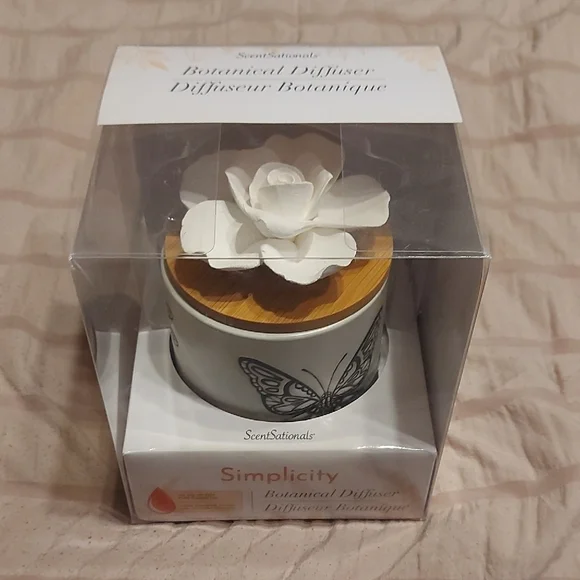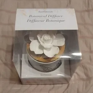 Enhance your space with this elegant diffuser. Features a white floral design on top.
