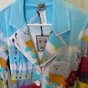 Simply Art by Dolcezza sz S mid-length blazer jacket multicolour flowers