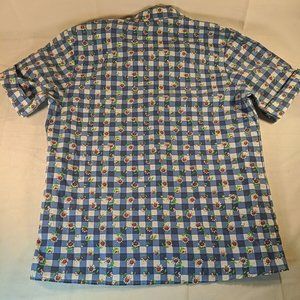 Simply Basic Blue Plaid Gingham White Daisy Flowers Button Up Floral Women S Small Short sleeve