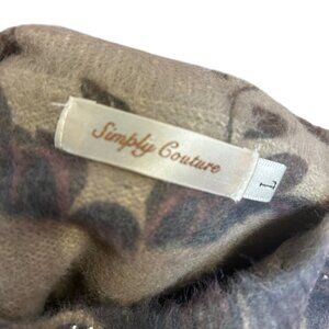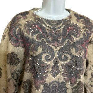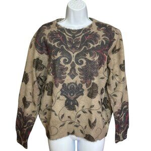 Simply Couture Brown Floral Beaded Front Long Sleeve Soft Sweater Top Size L