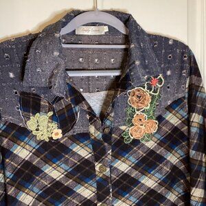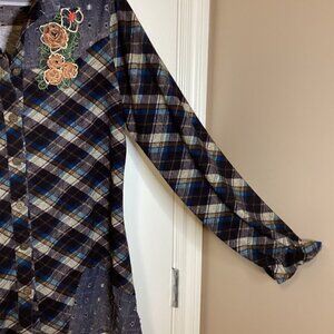 Style Tags: cowboy, western style shirt, applique flowers, loose fitting, long sleeves