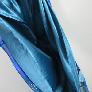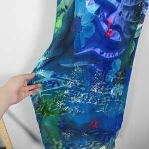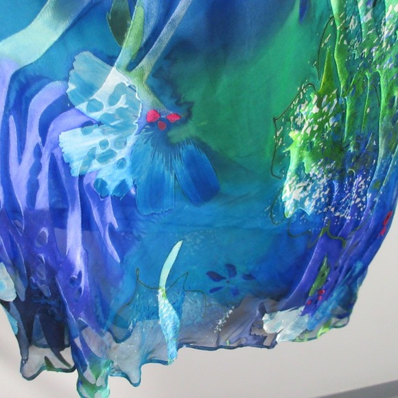 Simply Silk Watercolor Silk Vacation Dress S Blue Art Ruffle Hem Vtg y2k 124