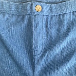 These are comfortable, stretchy cropped jeggings. They are brand new and never worn. First 4 photos are true color (cobalt/electric blue) , the color looks lighter with close up shots. Waist is lower in the front. In like new condition, no stains or flaws.