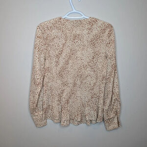 Simply Vera Vera Wang Tan Beige Brown Accordion Style Spotted Blouse XS