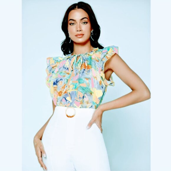 Simply Vera Vera Wang Watercolour Flutter Sleeve Blouse