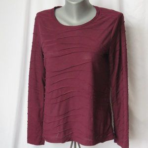 Simply Vera by Vera Wang. A wine colored long sleeve knit top with a textured ripple knit effect. Wear it on it's own or as a layering piece. In good condition with only minor signs of wear.