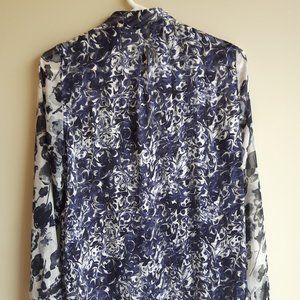 Simply Vera by Vera Wang Unique Sheer Flowery Blouse (XS). Purply-blue, has snaps. You will be complimented on this unique piece! Like new.