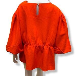 Simply Be Mandarin Red Balloon Sleeve Cotton Blend Plus Size Peplum Top