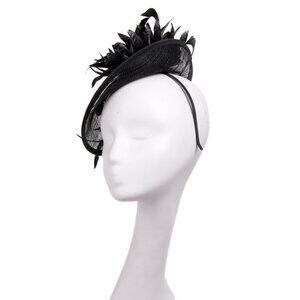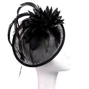 Sinamay Dipped Disk Fascinator Hat Headpeice Party Wedding Black Feather Flower