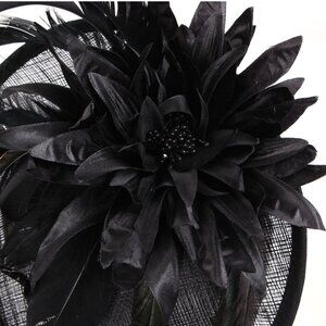 Fascinator Sinamay Disk Hat Headpeice Party Wedding Black Fancy Feather Flower