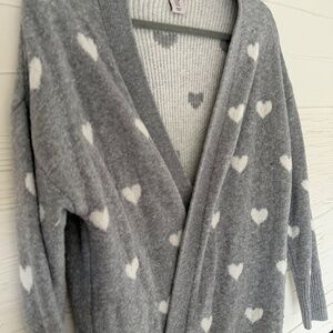 Sincerely Jules Grey Cardigan with White Hearts - Size M