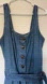 Fun sleeveless denim jumpsuit with functional tortoiseshell buttons down the front and adjustable matching D-ring belt. Has a wide leg fit , top is more fitted with vertical seaming for a flattering look. Has a zip closure below the buttons. No pockets.