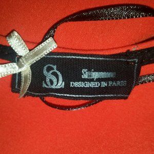 Sinequanone orange/black dress designed in Paris. Black front, orange back with white and black stripes down the side. Side slit pockets. NWOT Excellent condition.