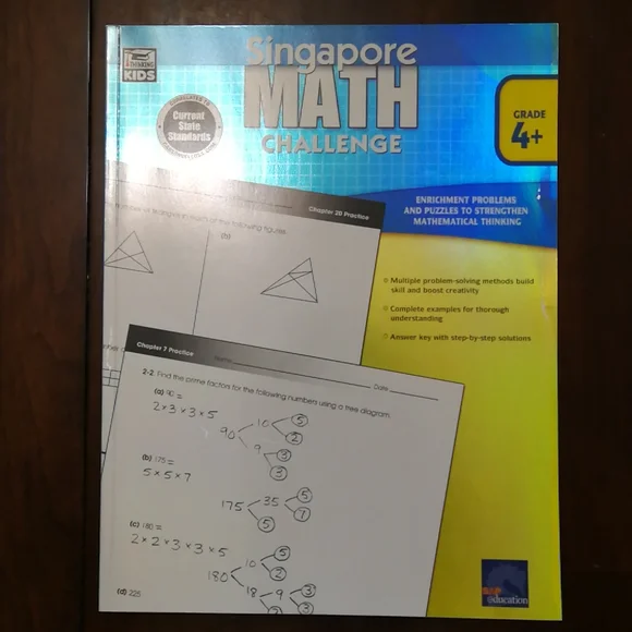 Singapore math challenge, grade4+, USA edition, a famous book for math learning.