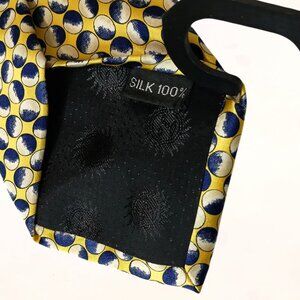 Sinsabang Pure Silk Tie Yellow Background Navy Blue Half-Moon Patterns