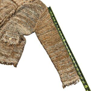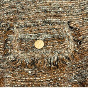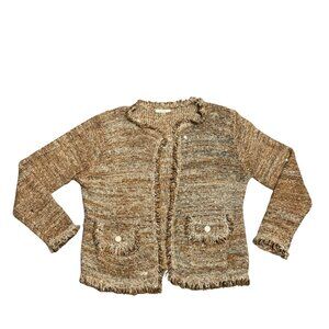 Sioni Brown Tan Textured Fringe Cardigan L w/ Sequins & Pockets
