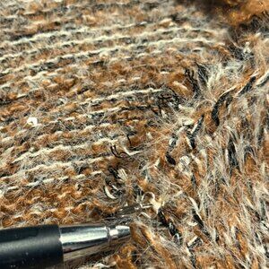 Cozy chic for fall and winter! This Sioni open-front cardigan in women’s size Large features a beautiful brown and tan tweed knit with a subtle shimmer from tiny clear sequins woven into the fabric. The texture is stunning in person.