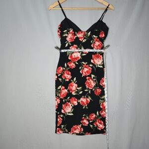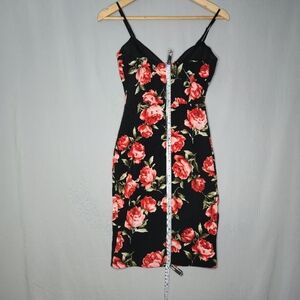 Sirens Red And Black Spaghetti Strap Zipper Front Rose Dress Size S